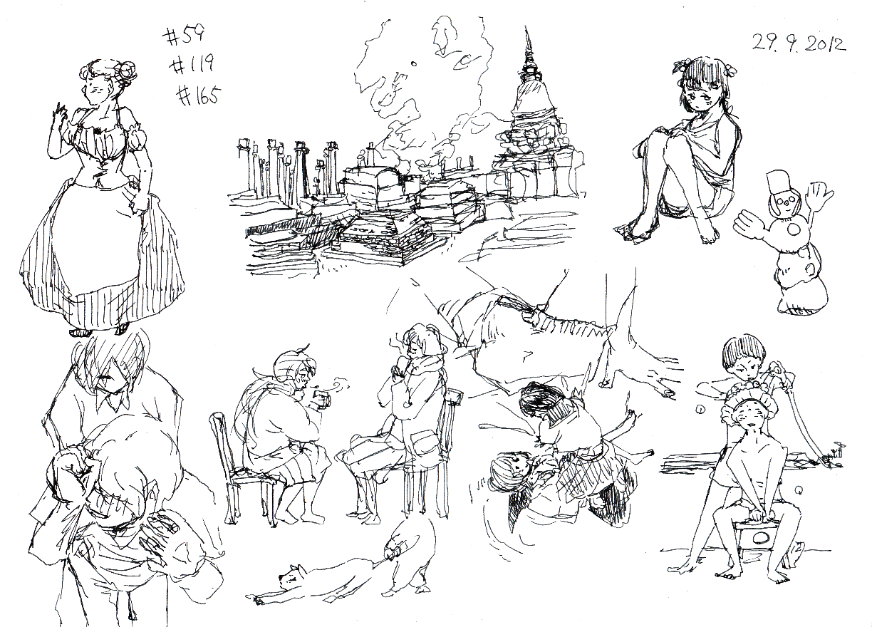 なんとなく描くと丸まったり体育座りしてるのが多いです